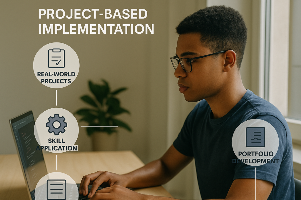 Project-based implementation learning focuses on developing real, practical skills by allowing learners to work on hands-on projects that mirror real-world scenarios. Instead of learning only theory, learners actively apply concepts to build solutions, solve problems, and gain industry-ready experience.